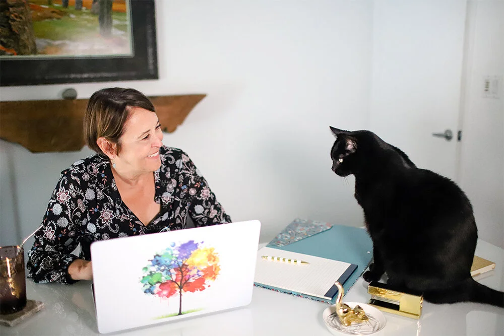 Say Hello to Mr. Binx, my coaching assistant. When we work together in a session, you’ll see a lot of him. Well, maybe not all of him. Just the flipping tip of his Tim Burton-esque shaped tail in the corner of your screen. Or the occasional saunter across my keyboard. He finds the sound of human voices soothing because as soon as I get on a call with a client, he shows up in all his purring glory, sending out waves of calmness.